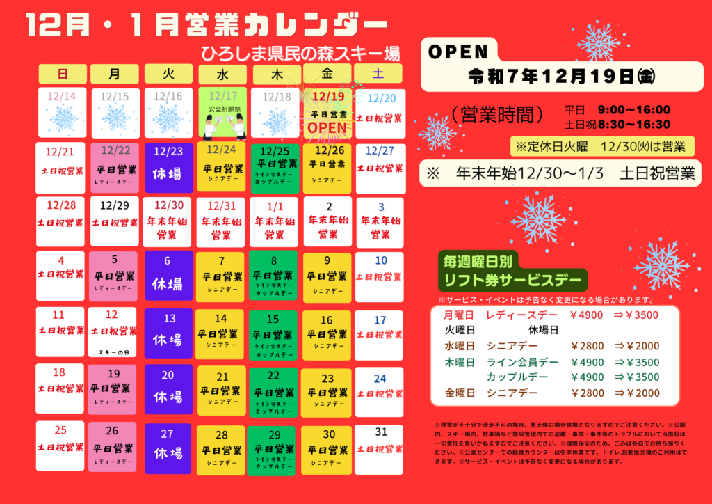 1/25 (Sun) Weekend and holiday hours 8:30–16:30
